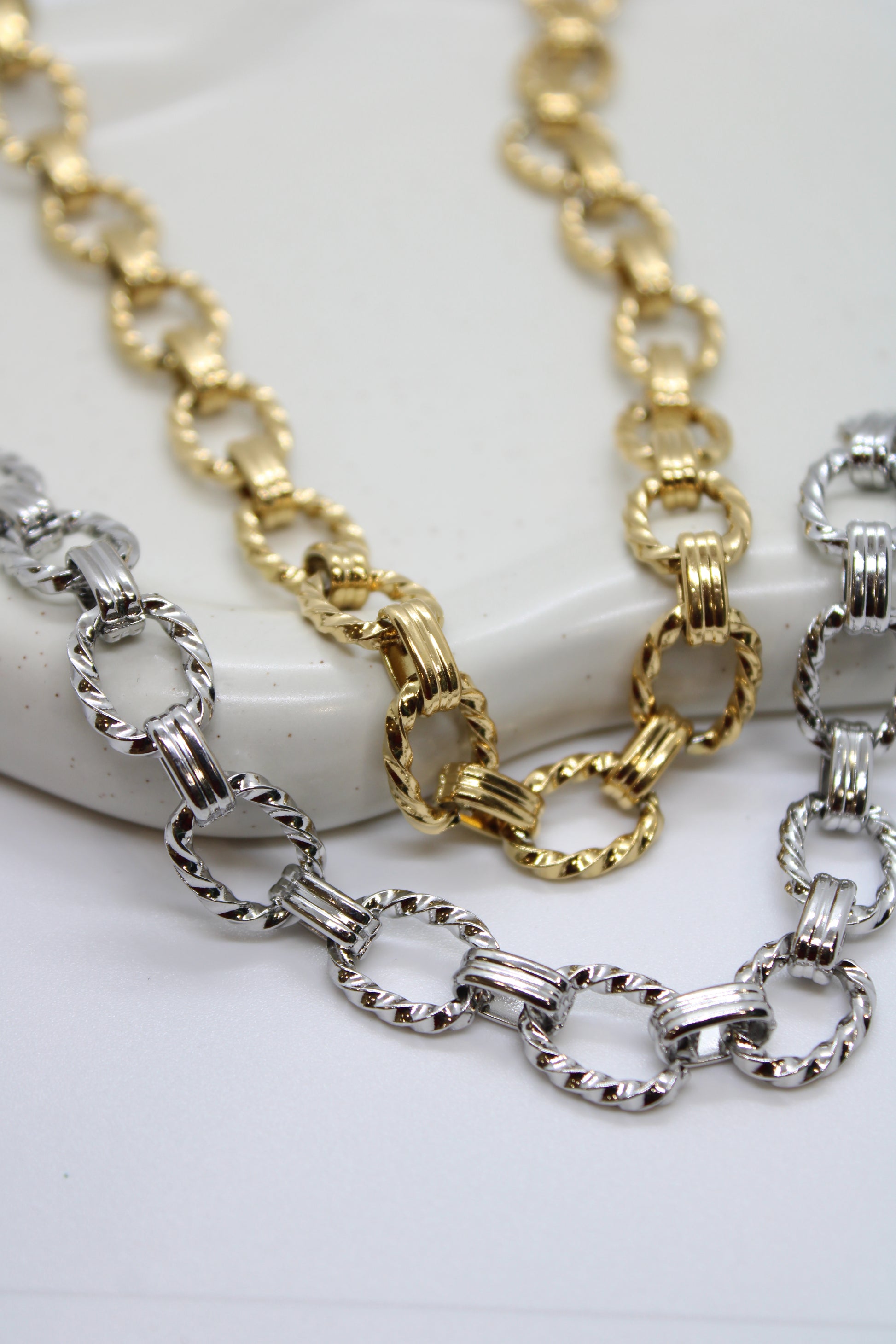 Collana a catena in acciaio inossidabile con Maglia a cerchi martellati.