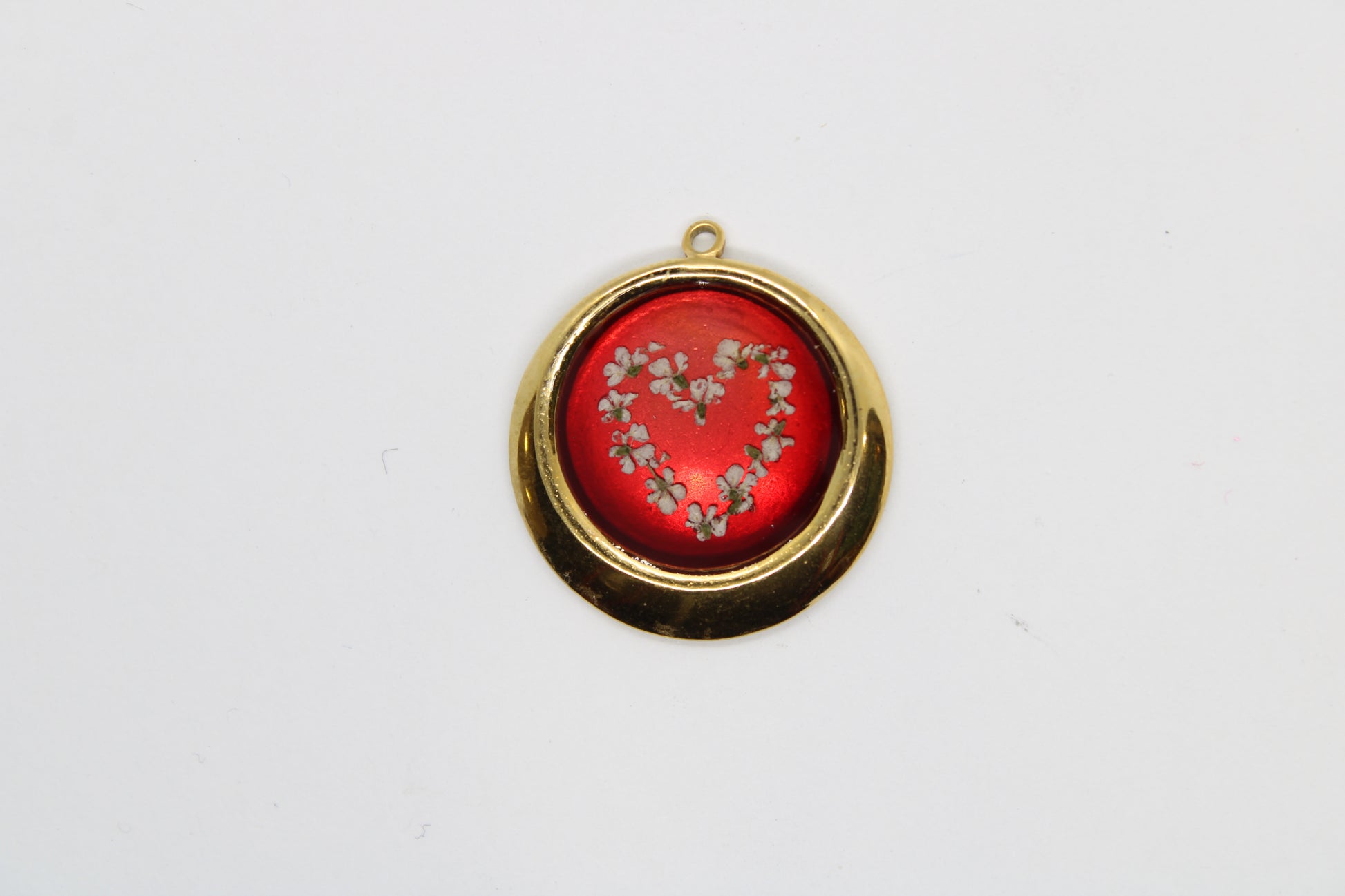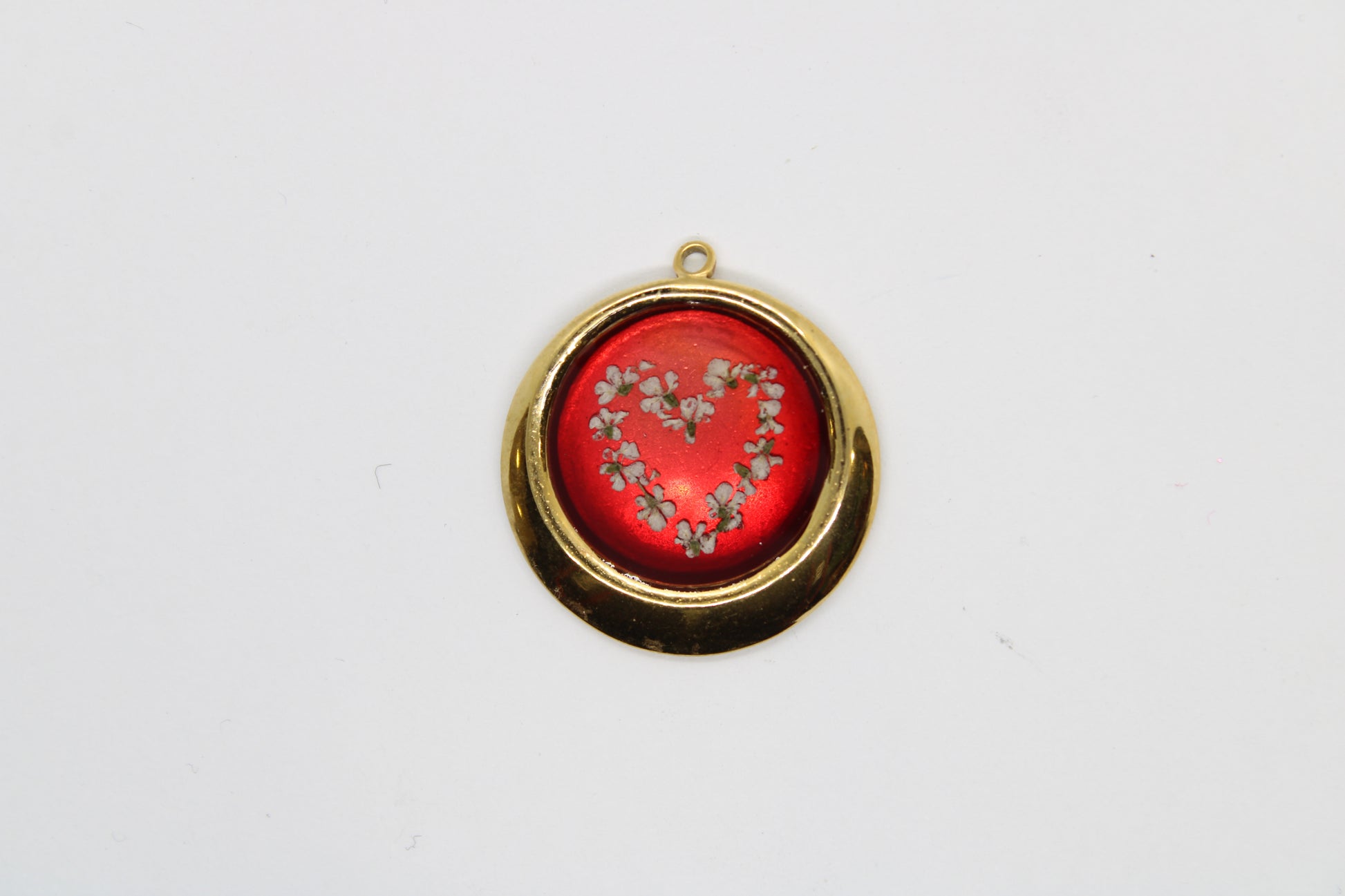 charm in acciaio inossidabile con fiori veri a forma di cuore