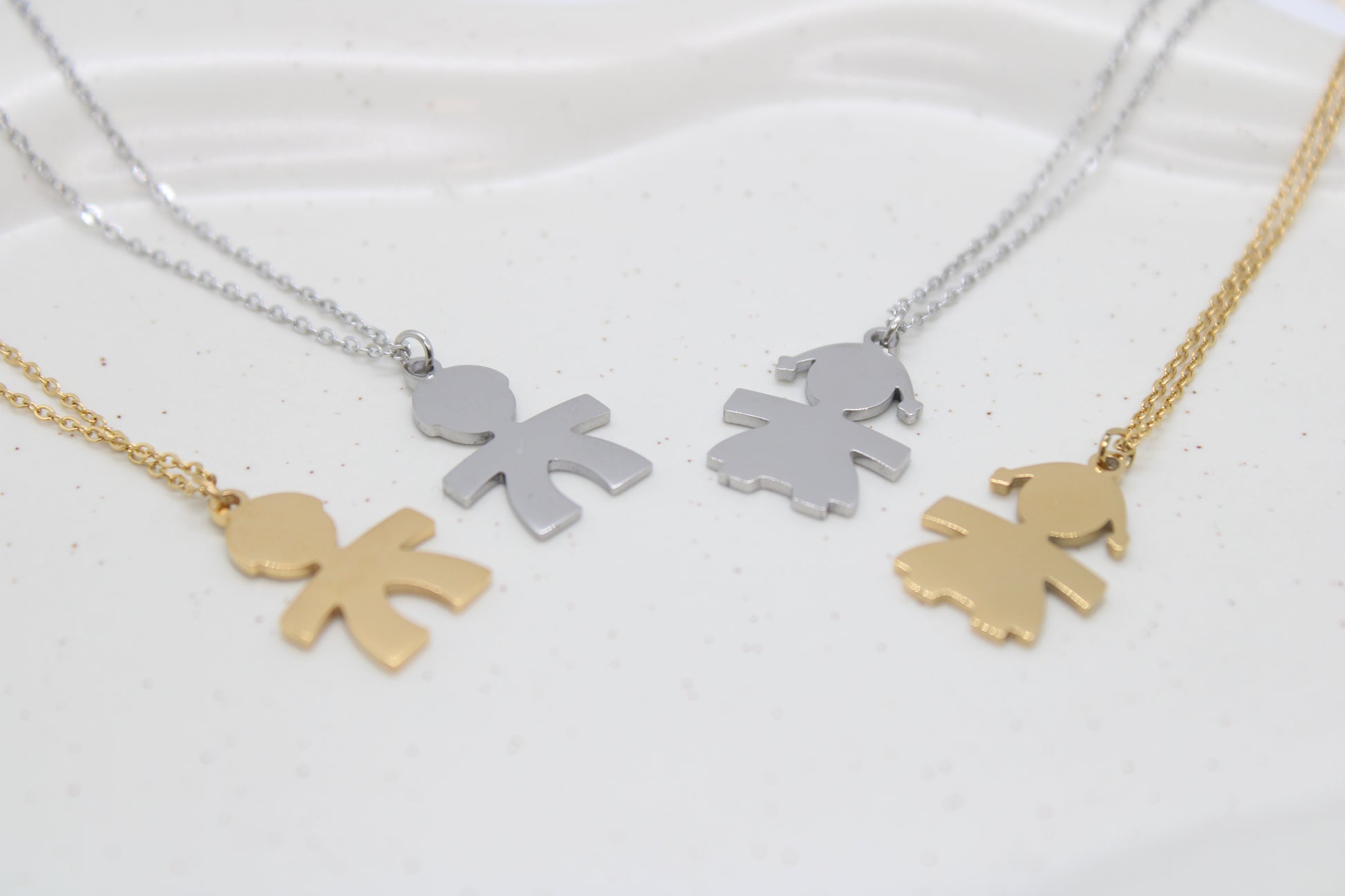 Collana in acciaio inox disponibile in silver e gold con bambino e bambina
