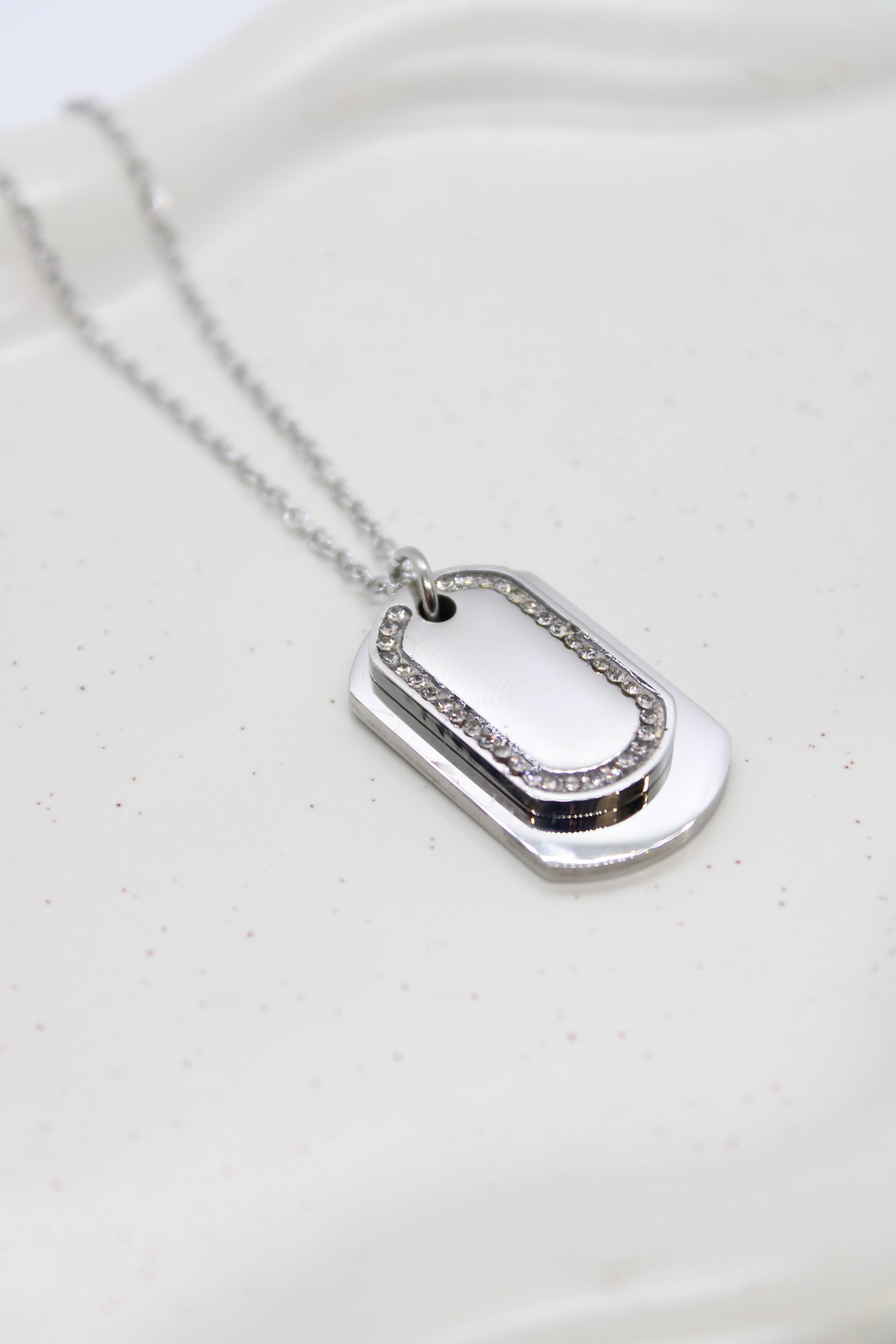 Collana in acciaio inox disponibile in silver & gold composta da doppia targhetta