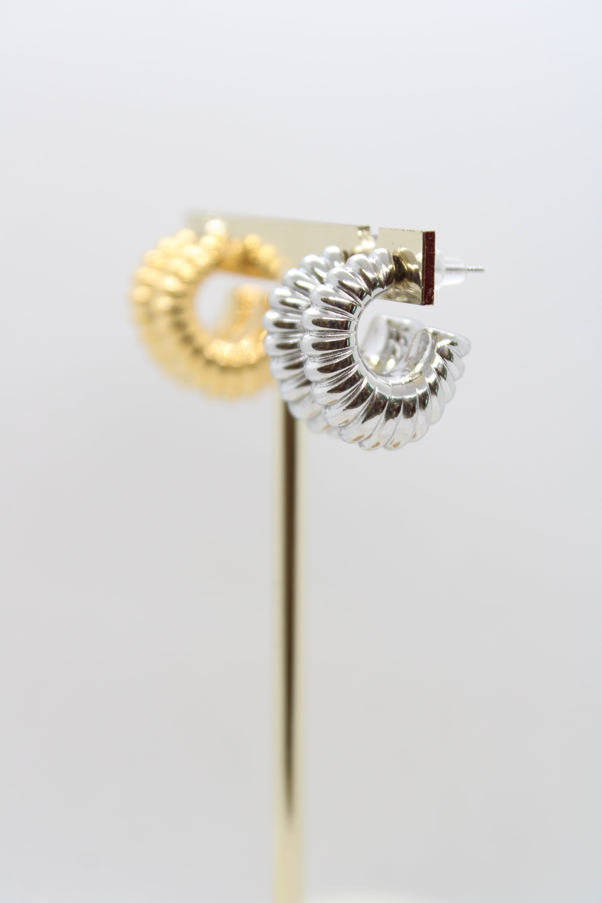Orecchini in acciaio inossidabile con chiusura a vitarella disponibili in silver & gold